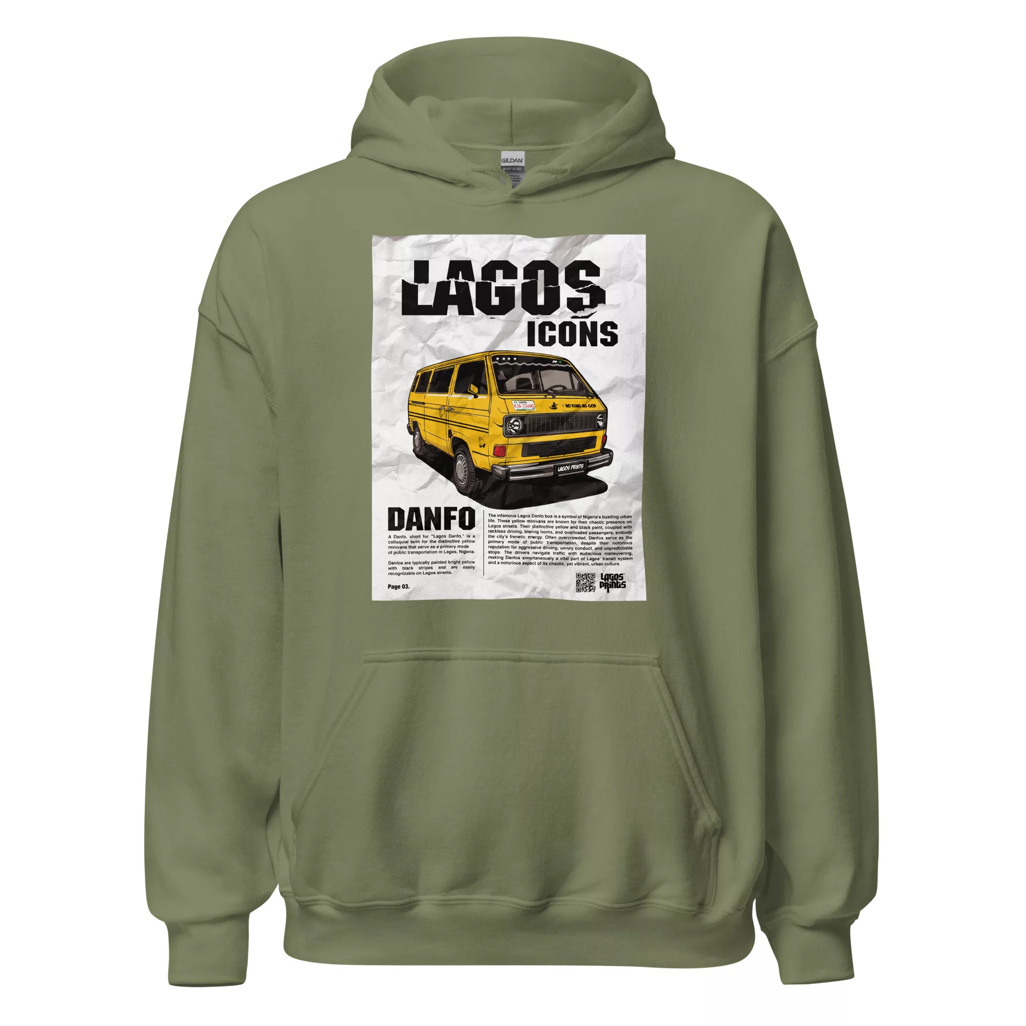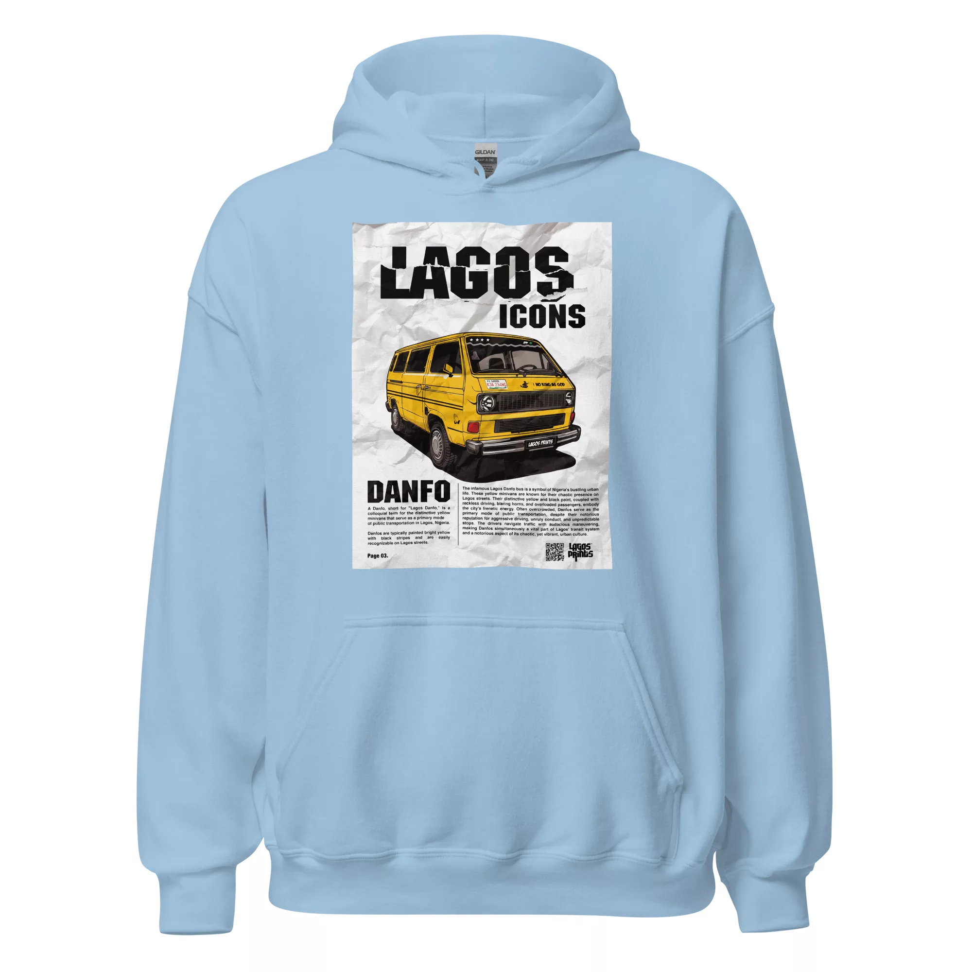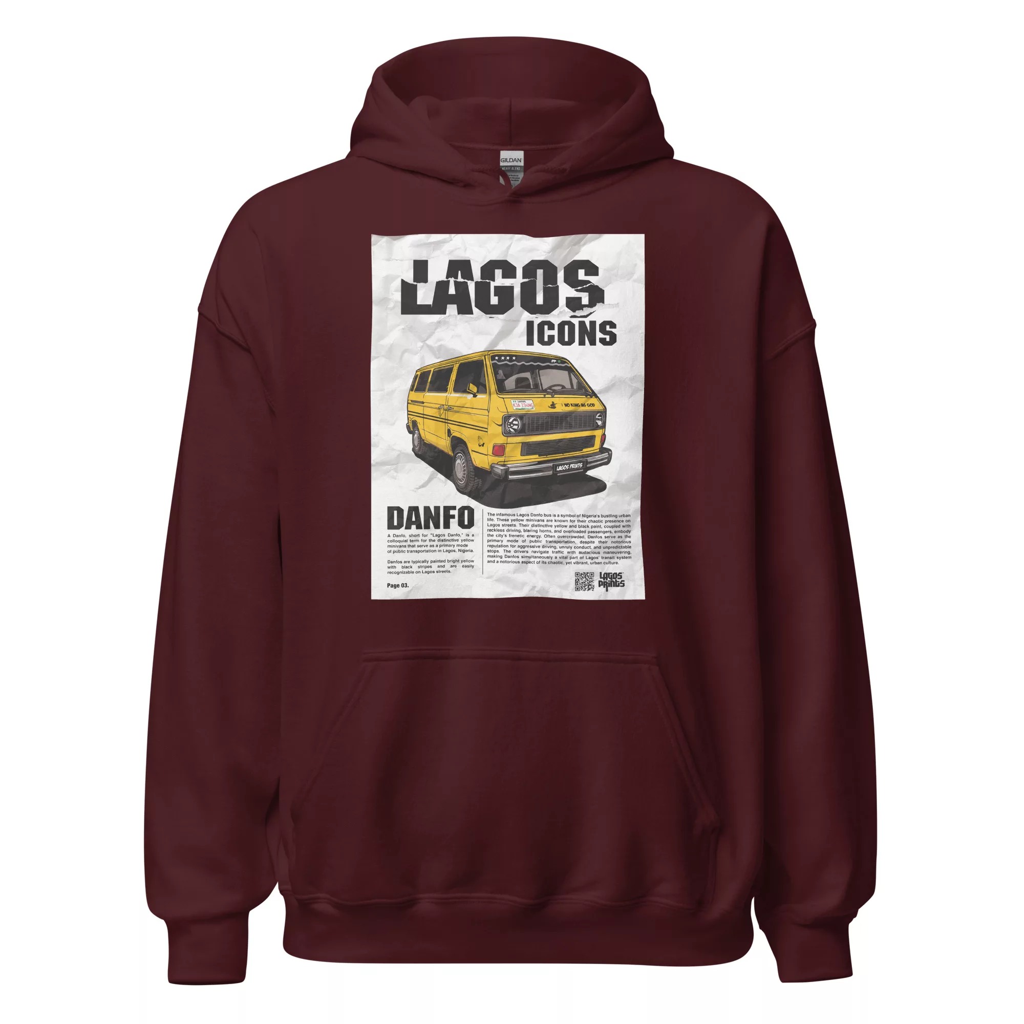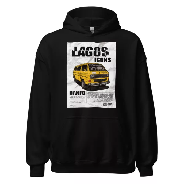 Introducing the “Lagos Danfo Icon” T-shirt by Lagos Prints, a unique and stylish tribute to the heart and soul of Lagos city. This eye-catching hoodie showcases a vibrant and intricately designed illustration of the iconic Lagos Danfo minivan, bringing the essence of Lagos’ urban life to your wardrobe.