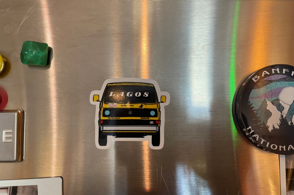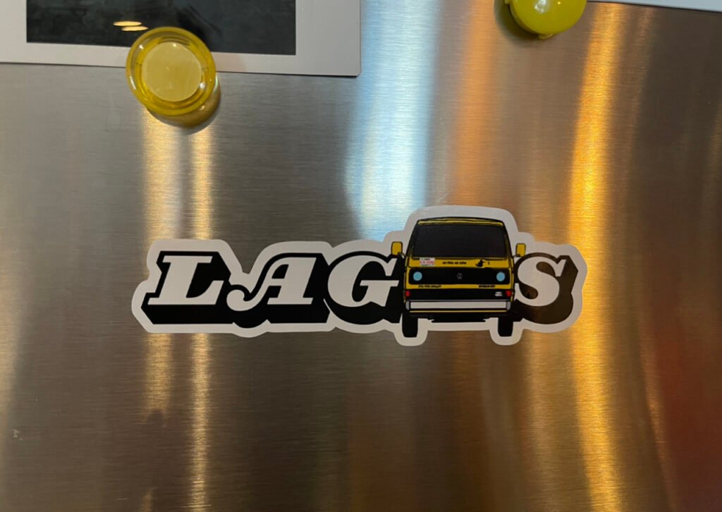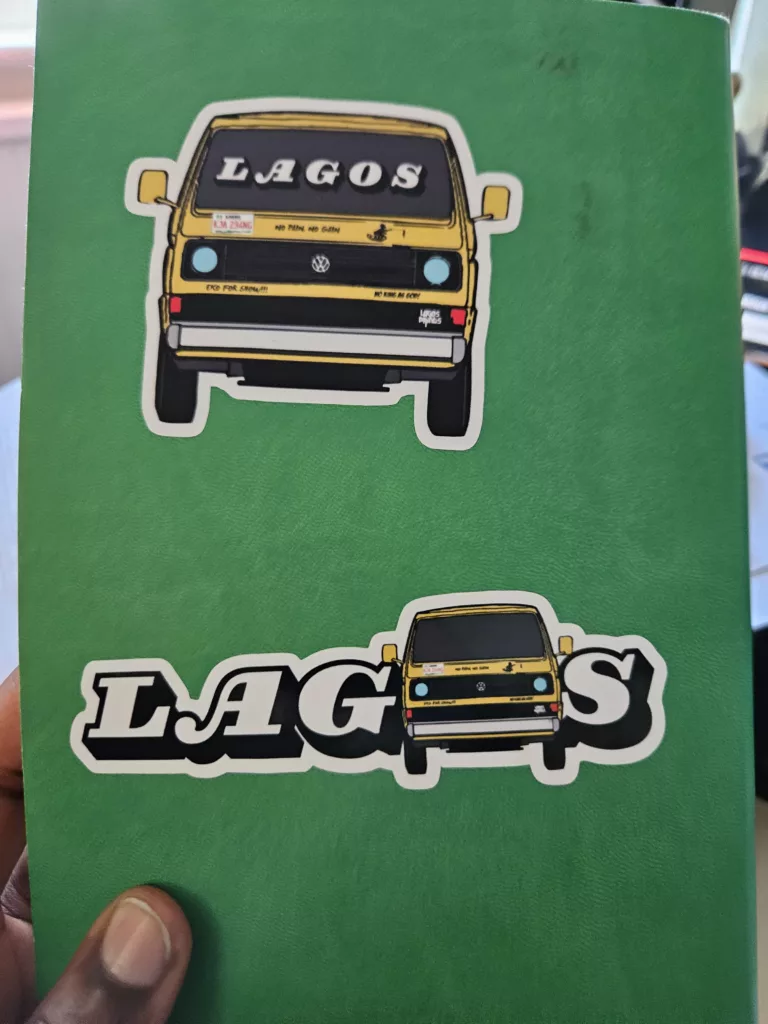 These Lagos inspired glossy stickers are designed just for you. Give your favourite items, like a notepad, laptop, or phone case an extra glow and personal touch.